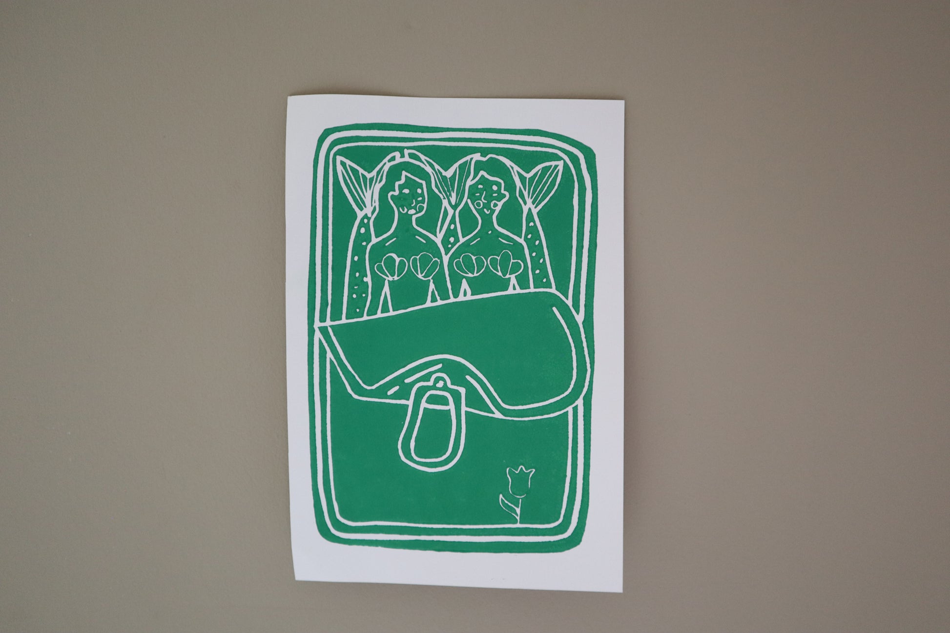 Mine små linoleumstryk er lavet i A5-størrelse – perfekte til at hænge op som vægpynt, eller til at bruge som et særligt postkort eller fødselsdagskort, når du vil give noget helt unikt.