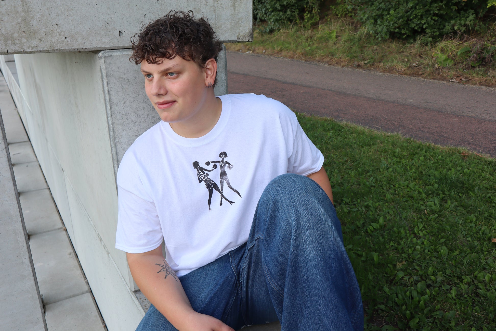 Trykket bliver lavet med linoleumstryk, som kan tåle op til 40grader i vask.