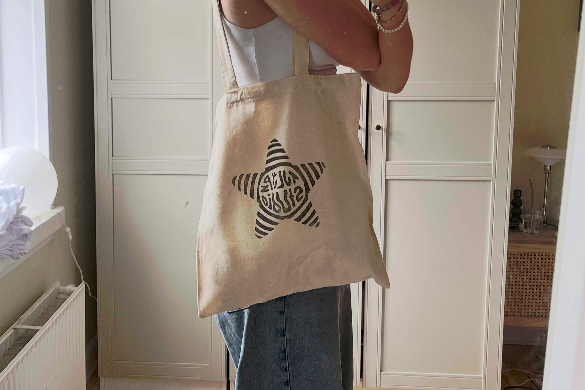 Trykket er håndlavet i linoleumtryk, og tåler 40 grader i vask!